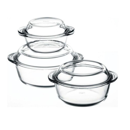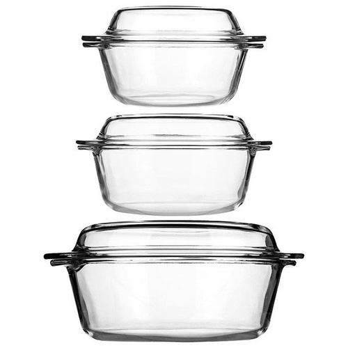 ست سهعددی خوراکپز «پاشاباغچه» (Pasabahce) کد «159021» یکی از نمونههای مناسب برای پخت و سرو غذا در مهمانی است. این ست از جنس شیشهی نشکن و مقاوم به حرارت است که در شیشهای نیز دارد. ظرف بزرگ 2.17 لیتر، ظرف دیگر 1.45 لیتر و ظرف کوچکتر 0.84 لیتر گنجایش دارد. اگر میخواهید خوراکی خوشمزه و طبقهبندیشده با مواد و سبزیجات متنوع تهیه کنید که با همان ظاهر و ترکیب سرو شود، این ظروف بهترین انتخاب شما خواهند بود. حجم متنوع این ظروف به شما امکان میدهد تا برای هر تعداد مهمان بتوانید خوراک موردنظرتان را بپزید و با همان ظرف سرو کنید. شیشهایبودن بدنه و درپوش آن، تمامی محتویات چیدهشده را بهوضوح نشان داده و مرحلهی سرو را برایتان آسان میسازد. درهای این ظروف عمق مناسبی دارد که میتوان در صورت نیاز از آنها برای پخت یا سرو یک غذای کمحجم نیز استفاده کرد. هر دو قسمت خوراکپزها دسته دارد که بهراحتی میتوان آنها را حمل کرد. این محصول مانند دیگر ظروف پاشاباغچه از کیفیت مطلوبی برخوردار بوده و یکی از ظروف مناسب و پرمصرف در آشپزخانه است. این ست هدیهای مناسب هم بهشمار میرود.